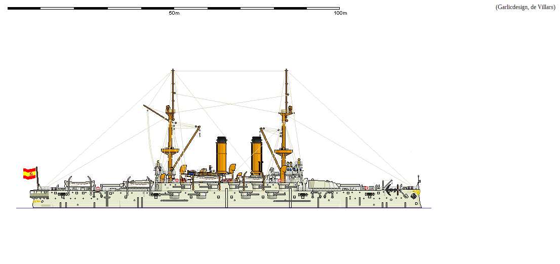Gabaryty jednostki są także moją całkowitą spekulacją. Dobrałem je tak, by okręt z przyjętymi charakterystykami się zbilansował, z uwzględnieniem faktu, iż jak najmniejsza wyporność jest wysoce pożądana. Pamiętać bowiem musimy, ze to okręt dla niezbyt zasobnego państwa i oszczędności są tu koniecznością. Ostatecznie stanęło na wymiarach 96,2x18,8 m oraz wyporności 4500 ton.